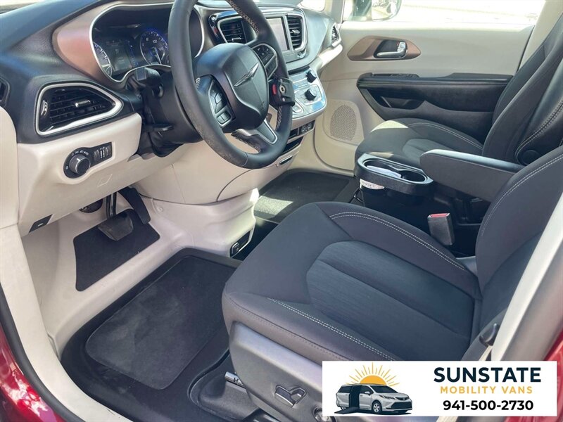 Introducing the 2022 Chrysler Voyager LX BraunAbility Chrysler Foldout XT, a versatile and accessible minivan designed for comfort and convenience. Powered by a robust Pentastar 3.6L V6 engine, it delivers 287 horsepower and 262 lb-ft of torque, ensuring a smooth and responsive driving experience. The exterior is elegantly finished in a Velvet Red Pearl Coat, providing a striking presence on the road. Inside, the cabin features a Black/Alloy cloth interior, designed for both style and durability. Standard factory features include a 7-inch touchscreen infotainment system with Apple CarPlay and Android Auto compatibility, allowing seamless smartphone integration. The Voyager also comes equipped with a rearview camera, adaptive cruise control, and advanced safety features like blind-spot monitoring and rear cross-traffic alert, enhancing both safety and convenience. With its spacious seating for up to seven passengers and thoughtful solutions, the 2022 Chrysler Voyager LX BraunAbility is an ideal choice for families and those seeking a reliable and accessible vehicle.